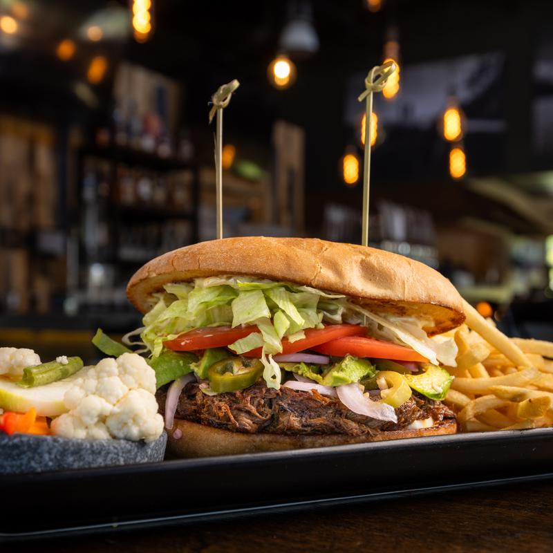 Served with seasoned chips and pickled veggies. (Substitutions may incur an upcharge.)